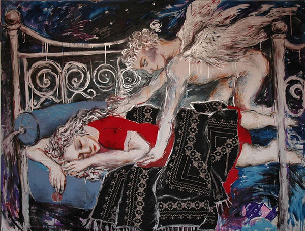 Emel Akın's solo show titled "Angels" will run between 10 - 23 May 2007 at Pi Artworks, Ortakoy main gallery. Gallery hours are 10.00 - 19.00 except Sunday and Monday or by appointment. Akın feels concept of the show is best described by the poem "Angel" by William Blake: The Angel I dreamt a dream! What can it mean? And that I was a maiden Queen Guarded by an Angel mild: Witless woe was ne'er beguiled! And I wept both night and day, And he wiped my tears away; And I wept both day and night, And hid from him my heart's delight. So he took his wings, and fled; Then the morn blushed rosy red. I dried my tears, and armed my fears With ten-thousand shields and spears. Soon my Angel came again; I was armed, he came in vain; For the time of youth was fled, And grey hairs were on my head.