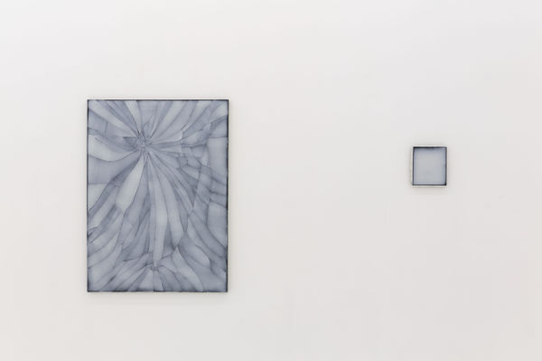 Yet, while Satı's material asserts itself as his paintings' primary subject matter, his works still allude to the world outside the canvas. Previously, his paintings' high-gloss sheen and bright colours bring to mind the pristine newness of mass-produced commercial goods, while the works within Cracks have a far more muted palette with colours reminiscent of skin tones. In contrast to the brittle artificiality of his earlier palette's vibrancy, these new paintings have a natural, corporal feel. The reoccurring use of blue-purple mixtures that imitate the colour of bruised skin healing imbues the work with melancholy. Alongside these paintings are works from Satı's cracked series; these transform his pigmented mixture into shards that are affixed directly to the canvas' surface. Bursting outwards from a central point they become like shattered glass or a stilled explosion. Similarly, these works suggest physical or psychological cracks.