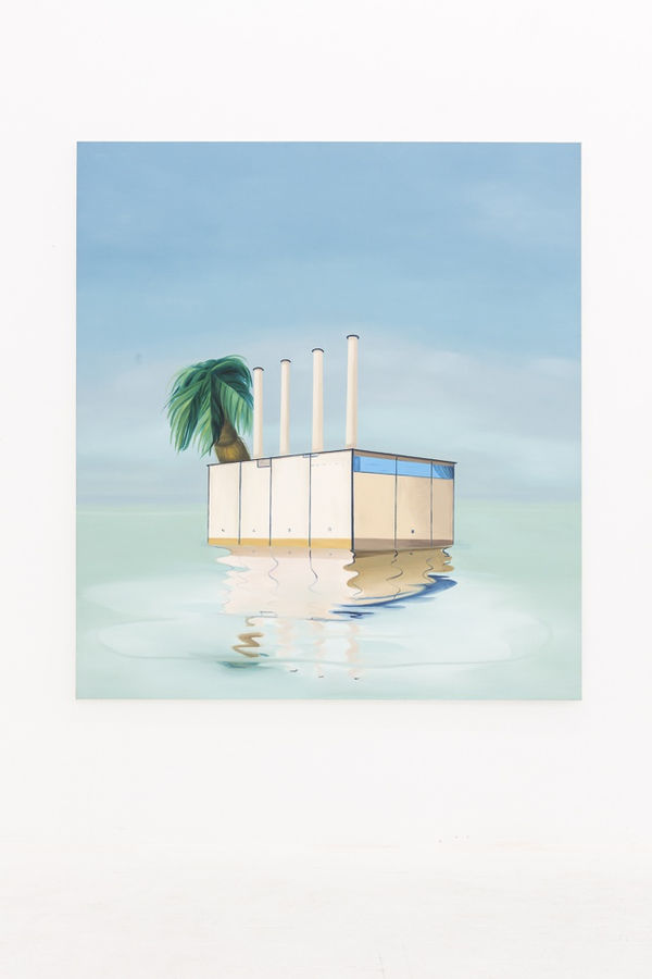 Akdeniz paints fictive landscapes and interiors inhabited by a sparse array of design objects and architecture borrowed from our recent past. While the juxtapositions within the picture plane are surreal, the subjects, depicted with smooth surfaces and a soft and muted palette, are unambiguous and unmistakable for anything else. Each series is tied together by an underlying concept that comes through the artist's close reading of psychoanalysis, philosophy, and architectural theory, though the paintings are not composed with the intention of being read in a linear fashion.