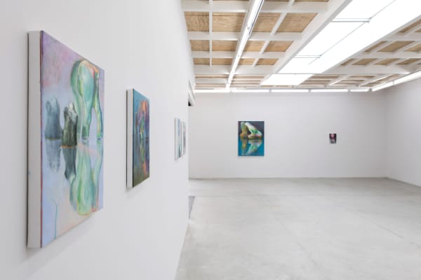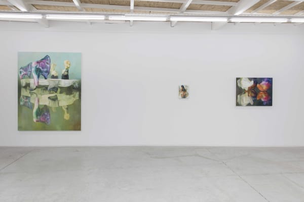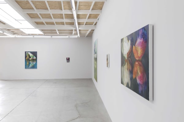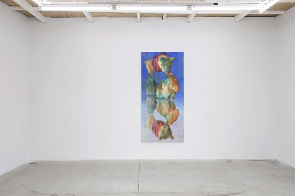 In the BLUE MILK exhibition, Maude Maris establishes a cosmological relationship between different animals whose species can’t be determined exactly and are not intended to be together. In the imaginary universe covered with the "Blue Milk" in which these animal figures exist, Maude Maris translates laws of symmetry and symbiosis of nature to painting. Becoming incarnate in painting made of sometimes smooth surfaces with fleshy textures and sometimes of mineral material, these animals are reunited here by unexpected inter-species friendships. Symmetry - evoking in these compositions the famous Rorschach ink test - is an almost systematic principle of external animal forms, contrary to the internal organisation of organisms. Its beauty, exempt of any organic function, perhaps offers the clues to an awareness of existence. From a more contemporary perspective, Maude Maris’s animal figures are modified and mutating creatures that belong to our changing and troubled world and yet they stand in a collaborative relationship.