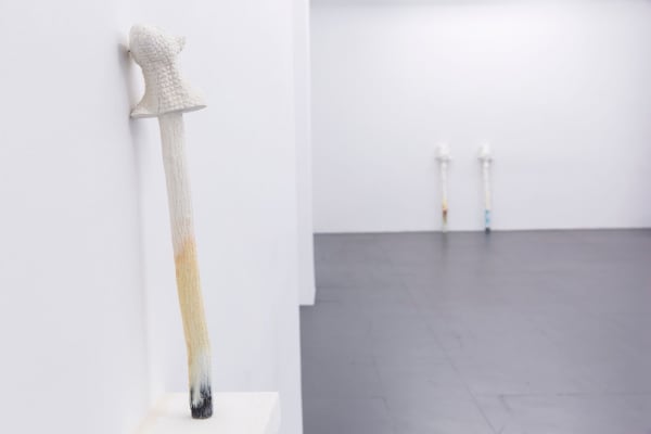 Maris investigates the role -as protector- and spiritual meaning of ancient sculptures depicting animalistic figures, particularly large scale ones placed on and around buildings. Particular attention is given to how the form of these sculptures has changed over time. Her work references both historical sculptures such as those depicting Big Jerry, Big Horus and Big Io, alongside creatures of her own creation.
