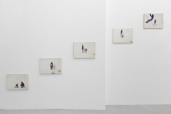 Nurturing values and passing on work ethics are demonstrated in a series of photographs depicting the artists' young children play-acting a scenario of 'climbing a snow mountain' on their studio's photographic infinity cove. Rise to Work, Work to Rise (2018), photographed by Bruno Baptista, calls to mind the two commonly accepted tenets of success-building: hard-graft (perspiration) and creativity (inspiration). Repainted before every use, the cove is now several centimetres thick with white paint and represents hundreds of hours of manual labour, off-set against the creative freedom of the scene acted upon it.
