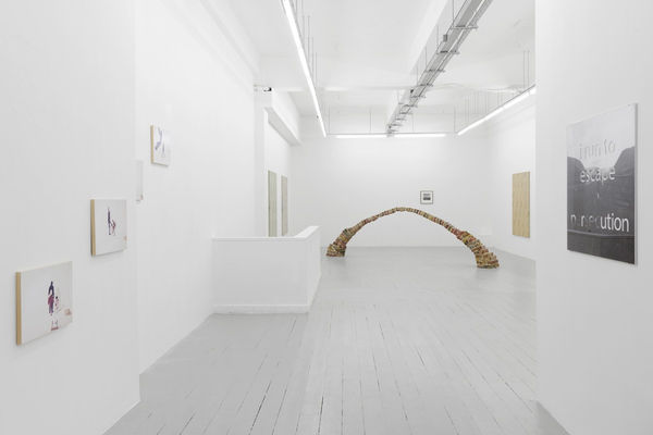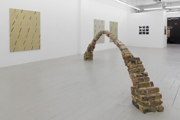 The central piece in the exhibition, Troubled Waters (2018), depicts a bridge fashioned from London bricks scavenged locally from broken walls. At one level it mimics the popular slogan 'Build Bridges, Not Walls', yet the apparent simplicity of that message (however well-intentioned) is tested here by the sculpture's deliberate structural weaknesses.